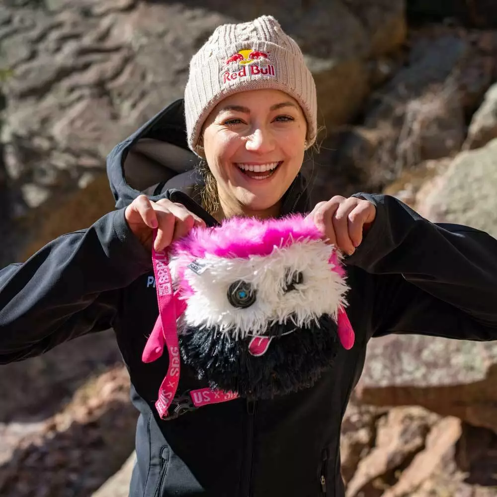 The SASHA chalk bag has been designed by Sasha DiGiulian and is a collaboration to make climbing more fun, equal and inclusive. As Sasha DiGiulian said: “I am creating a monster based off of me, the SASHA. I want it to be a monster that represents strength for young girls and boys and empowers them to be the best version of themselves.”