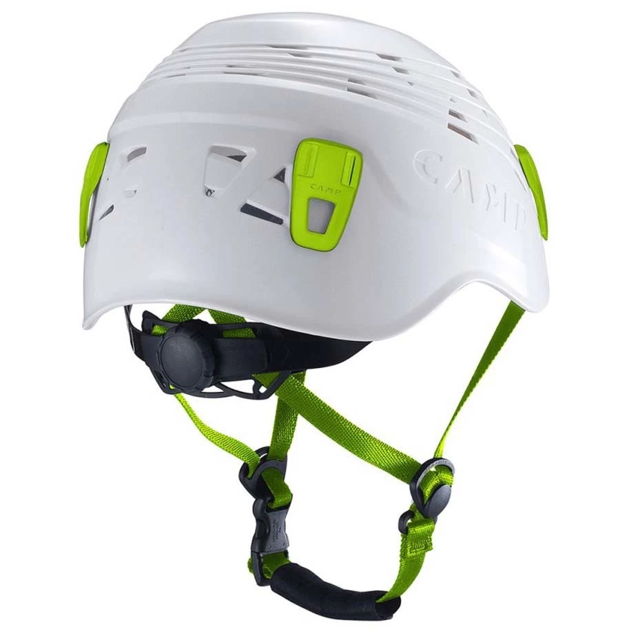 The Titan blends strength, durability, comfort, and a striking aesthetic unlike any other helmet. It is an authentic workhorse with an ABS injection molded shell that is specially shaped to optimize strength and durability. Assembly is done without the use of fixed components which means it can be disassembled for easy cleaning and maintenance. This is particularly useful for adventure parks and guiding outfits who can replace the liners as they get contaminated over time. The spider suspension framework delivers a precise fit and excellent ventilation. Comfort is enhanced even further with soft, breathable, absorbent padding that keeps everything feeling dry and light during use. An updated dial adjustment system is beefed up to handle heavy use and four strong clips hold a head lamp securely in place.