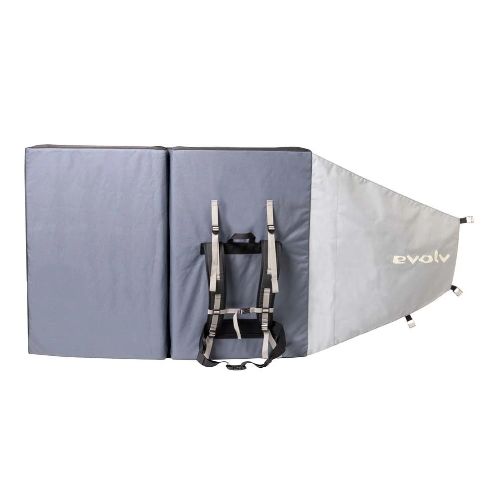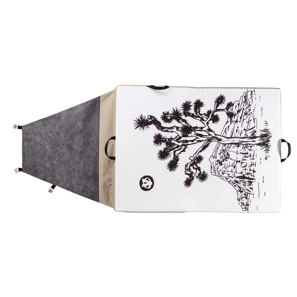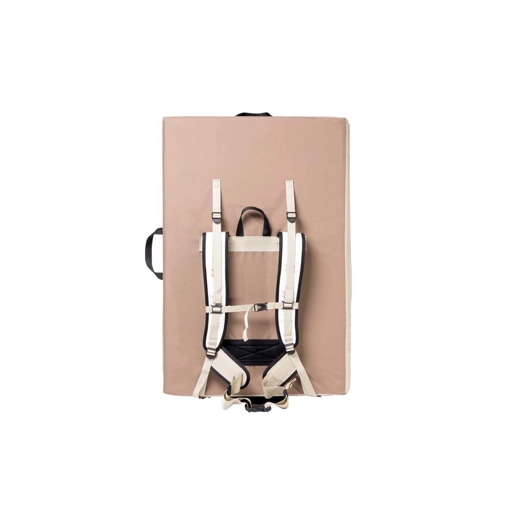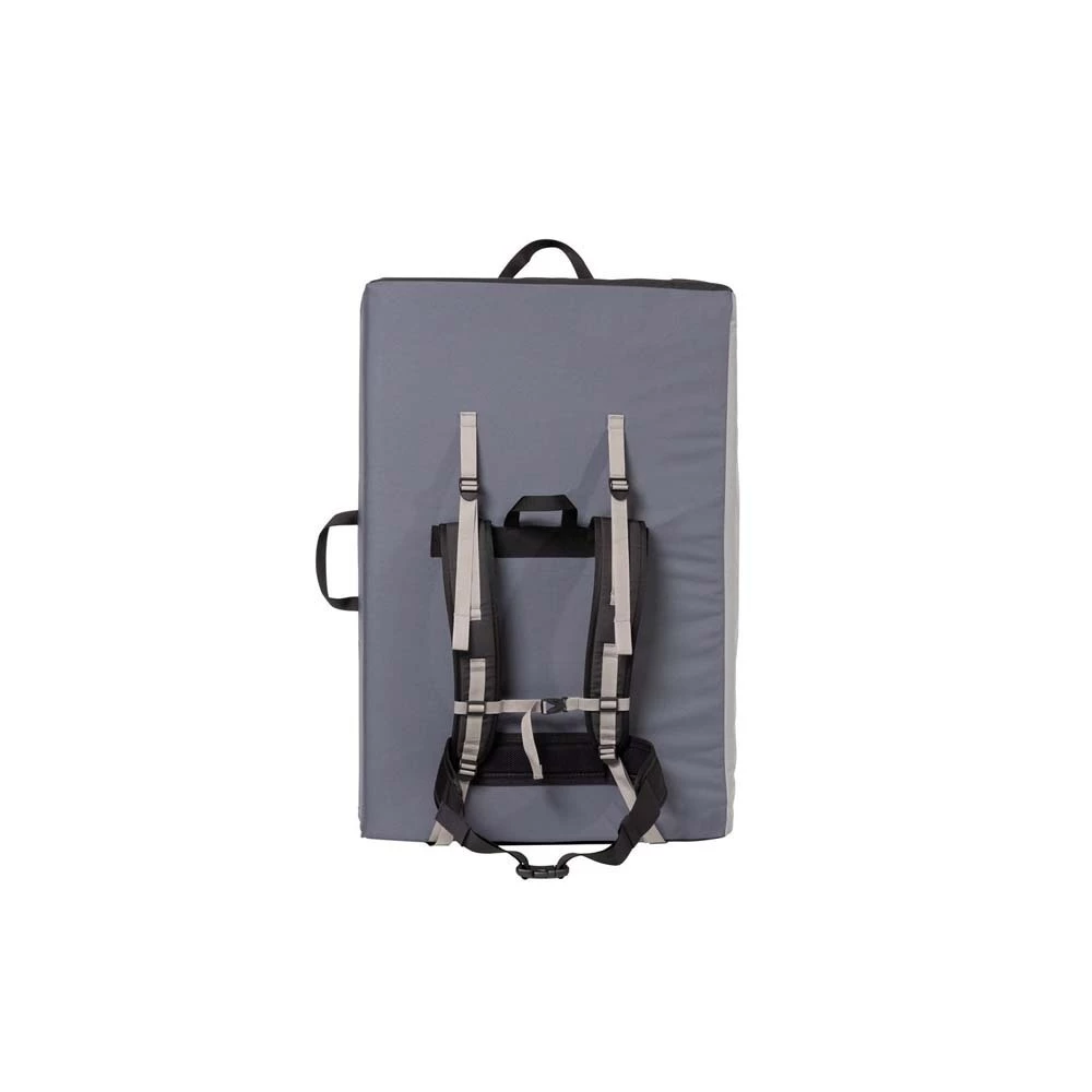 The Drop Pad is easily carried, comfortable and adjusts to most size torsos. Great pad for your crag adventures. Adjustable and contoured backpack straps, larger and more cushioned waistband to keep pad/gear weight on hips. A sternum strap to keep shoulder straps in place, and load lifters to redistribute weight off shoulders and onto hips. New quick-release industrial strength metal cam style buckles all around for easy open and close. Huge carpet square to clean shoes. A combination of metal cam style buckles, webbing, and flaps to secure your gear and, or another pad. Easy access handles to move pads quickly from boulder to boulder without closing the pad. 3″ open cell foam sandwiched between a 1″ layer on top and bottom.
