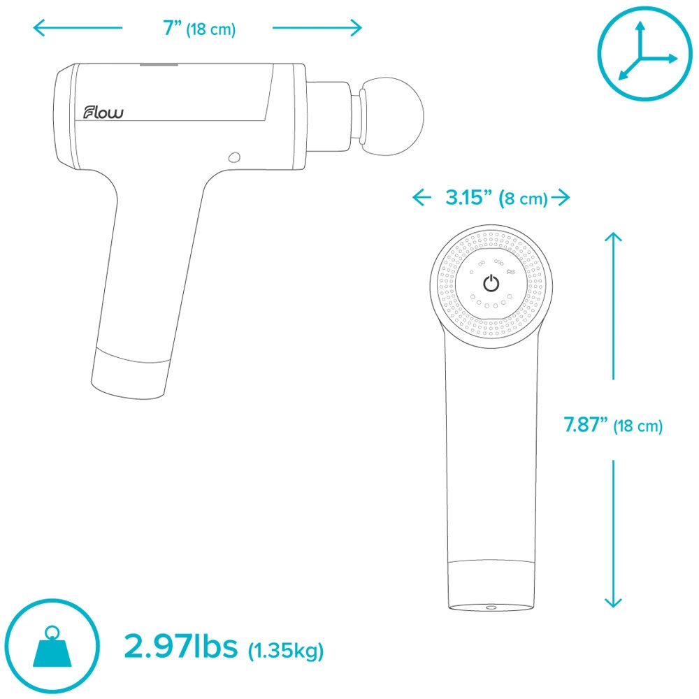 - FLOW FLOWHEADS – Four different attachments offer varying firmness and shapes (Medium, Hammer, Bullet & Fork). Each one is precisely engineered to deliver specific benefits targeted muscles, muscle groups, and other areas of the body.